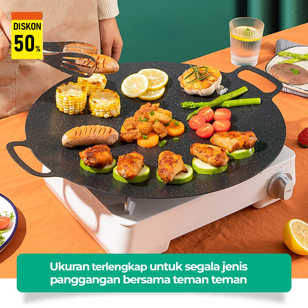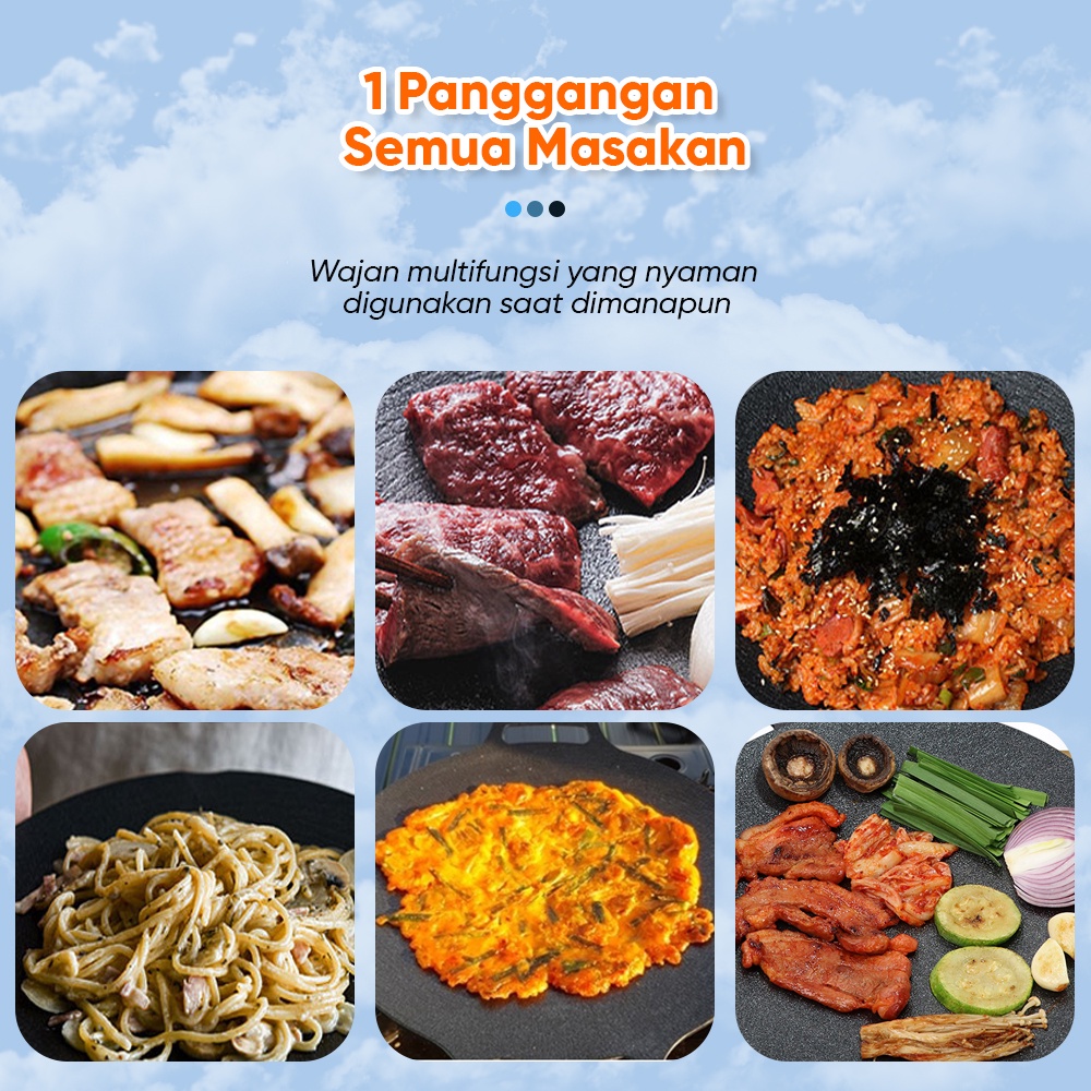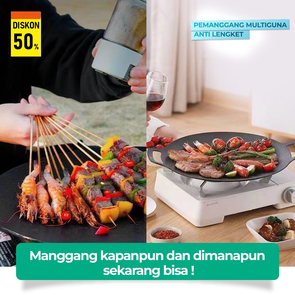 Dengan Alat Panggang multiguna grill pan ini acara bakar bakar kita kita tidak perlu menggunakan arang plus gak perlu capek capek kipas kipas arang nya ataupun makanan kita jadi terkena arang sehingga tidak lagi higienist.
